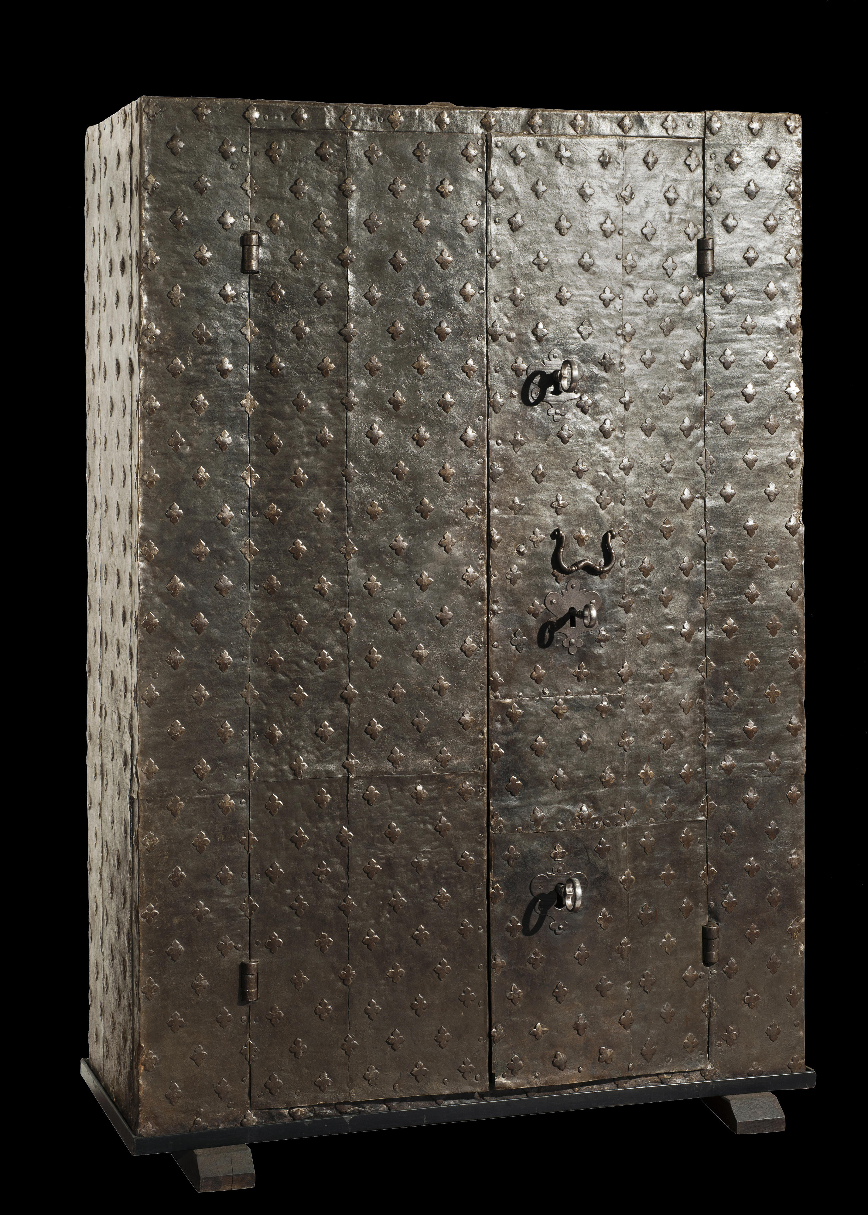 Legno di noce e lamine di ferro, cm 190x130x46,5